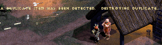 In later patches (and in Hellfire) the Diablo programmers included a dupe detecting feature. This addition checks a unique item ID number for any item on the ground, and deletes extra copies of the item, whether the dupe is a piece of jewelry, a weapon, an elixir, or anything at all. This doesn't make duping impossible; it just prevents players from dropping multiple copies of the same item on the ground. If you're playing with someone and you see this message when they die, they were almost certainly using 2 duped copies of the same ring, one of which just vanished. (Or if they were a Bard they might have been dual-wielding two copies of the same weapon.)